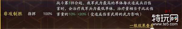非攻制胜的治疗也可以触发兵书【援其必攻】的减伤,不过要由武力最高的武将带援其才能触发。