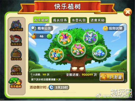 每浇 3 次水都可以结出果实,获得植物碎片、钻石、金币等奖励,稀有植物疯帽菇、312钻石大奖等你抱回家,拼手气的时候到啦。