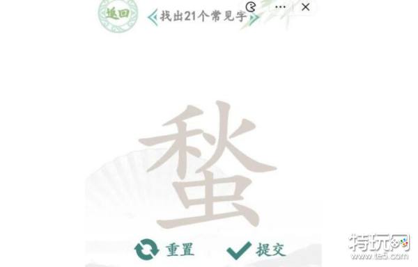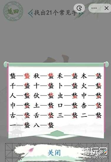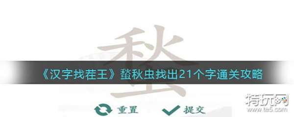 以上就是汉字找茬王蝵秋虫找出21个字通关攻略答案抖音小游戏分享,更多关卡攻略,请点击关注特玩更新!