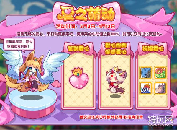 搜集足够的爱心,来打动莫伊莱吧!莫伊莱的心动值达到100%,就可以获得进化资格哦~