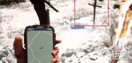 2、来到这个位置之后,可以看到有一个十字架插在雪地里。