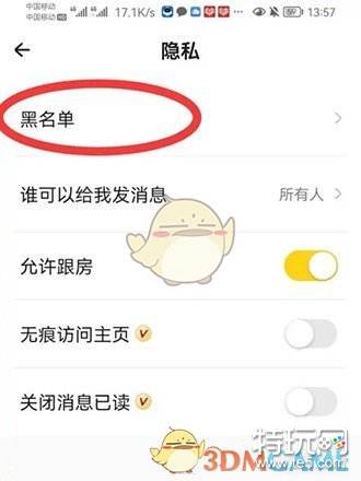 3、在隐私页面,点击【黑名单】,即可查看拉黑的人。