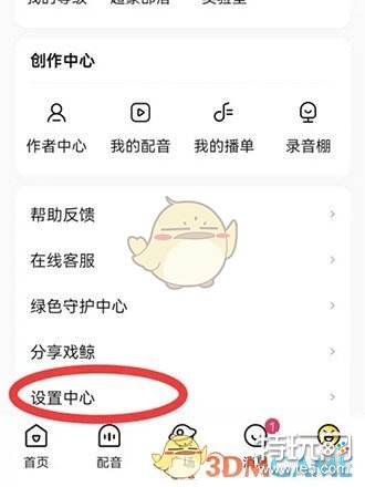 1、打开戏鲸,在我的页面点击【设置中心】。