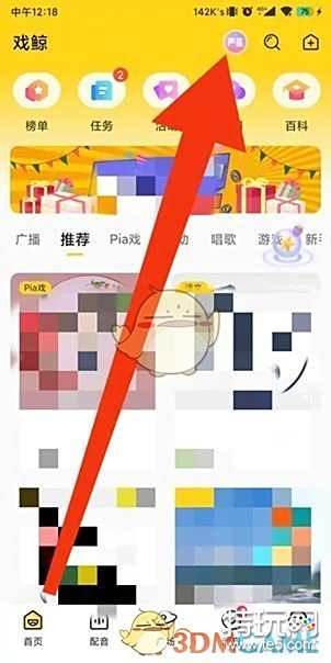 1、首先进入戏鲸,点击戏鲸首页右上角的声鉴。