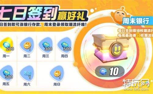 大家在游戏中,每天都可以签到,在每日签到的第七天中,大家可以获得10个潮流纤维。