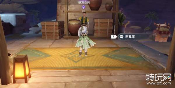 2、在下图位置倒找NPC【阿扎莱】,和他对话以后我们可以选择有什么卖的。