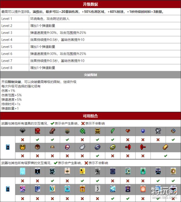 增加弹道数,可以提高环绕圣经的数量,弹道速度影响圣经的旋转速度,持续时间可以让圣经旋转存在的时间更持久,伤害范围增加了圣经距离玩家的距离,范围越大,旋转的圆圈半径越大。