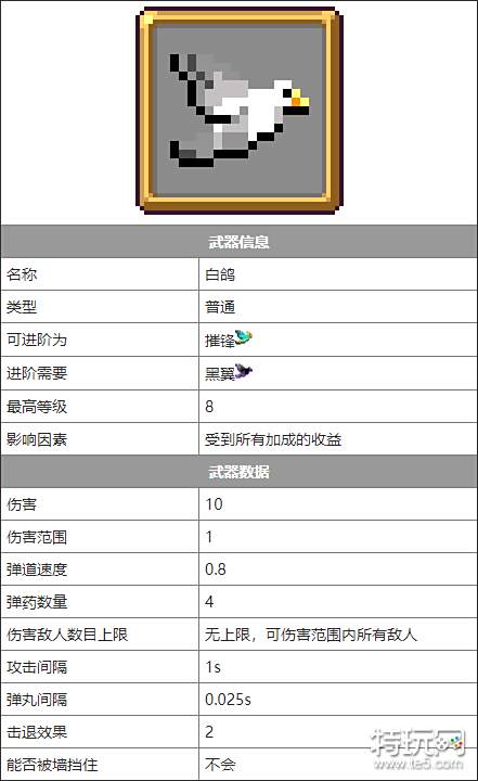 吸血鬼幸存者武器白鸽好用吗?吸血鬼幸存者武器白鸽可以从冷却时间和持续时间的加成中获取巨大的收益,可以让白鸽的轰炸更密集和频繁,下面就是小编带来的吸血鬼幸存者武器白鸽属性一览,快来看看吧!
