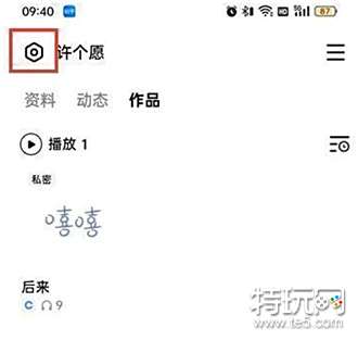 2.然后在个人主页的页面中点击左上角的【设置】图标;