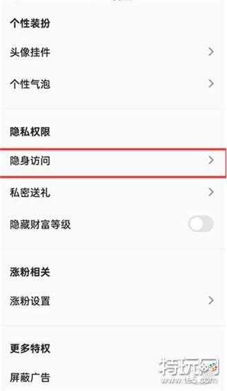 4.点击过后在VIP设置的页面中点击【隐身访问】;