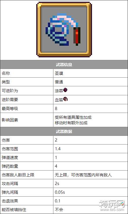 拥有武器血笞(鞭子与空虚之心合成)的话,将圣谟升满级,可以进化为涤罪,目前这是唯一可以二次进化的武器。