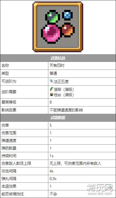 吸血鬼幸存者武器天有四时怎么样?吸血鬼幸存者武器天有四时在游戏中可以造成范围的伤害,增加伤害范围会增加爆炸面积,下面就是小编带来的吸血鬼幸存者武器天有四时属性一览,快来看看吧!