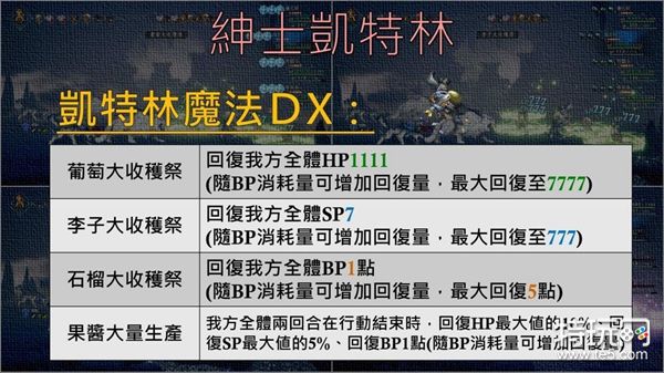 1.葡萄大收获祭:回复我方全体HP1111(随BP消耗量可增加回复量,最大回复至7777)。