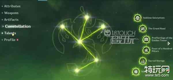 1、一命 高门的谒礼:施放画则巧施后的3秒内,卡维的草元素抗性提升50%,受治疗加成提升25%