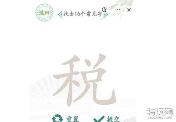 16、税找出16个字:税、和、禾、木、八、千、十、卜、兑,兄,口,儿,元,兀,二,一