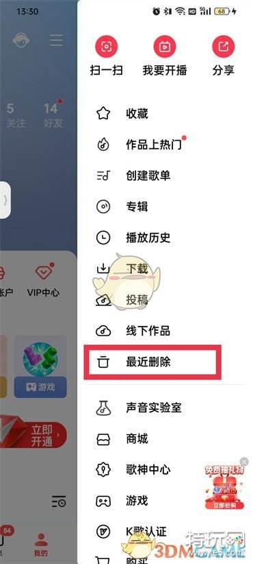 以上就是小编带来的全民k歌删除作品在哪?最近删除查看方法,更多相关资讯教程,请关注特玩手游网。