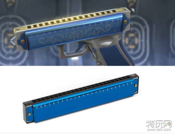 GLOCK-口琴的手枪滑轨原型为12孔的布鲁斯蓝调口琴,单看手枪的滑轨套筒处谁能看出得出,这是一把口琴?真的可以算得上是一把隐形手枪!也是为大家特意安排了GLOCK-口琴和口琴的对比图,相似度真的是超高!