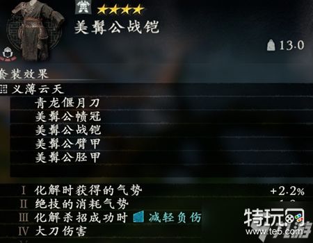 5、绝招消耗倍率为97.9%(关羽服套装效果-2.1%),实测满气状态可砍8刀,0气状态可砍4刀,8刀即为普刀的16刀。