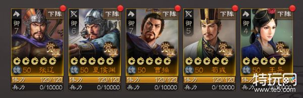 这是一套全员都是魏国武将的阵容,张辽因为本身就有中非常高的单体伤害输出,如果敌军是聚集在一起的话夏侯渊的群体输出能够给对方称重的大家,因此这两个相互搭配能够很好的干扰对方的排兵布阵。而王异能够给输出型武将提供连击的能力,让他能够造成更多的伤害。而曹操和荀彧能够提升队伍的生存和输出能力,因此在防守方面比较考验玩家对游戏的理解,如果是新手玩家并不推荐这个阵容。