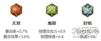 解析:选择无双提升暴击效果,配合无尽大大提升阿轲的爆发能力,狩猎的移速配合位移大招,可以让阿轲更轻松接近对手完成刺杀,攻速可以让阿轲在背击时可以配合技能完成普攻,鹰眼的物穿效果可以为阿轲提供稳定的输出能力。