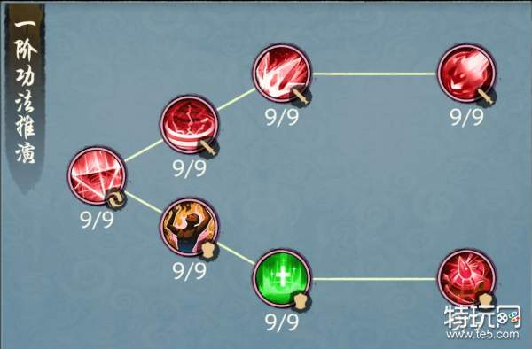 每阶推演功法,包含1个本源功法,3个攻击功法,3个防御功法。