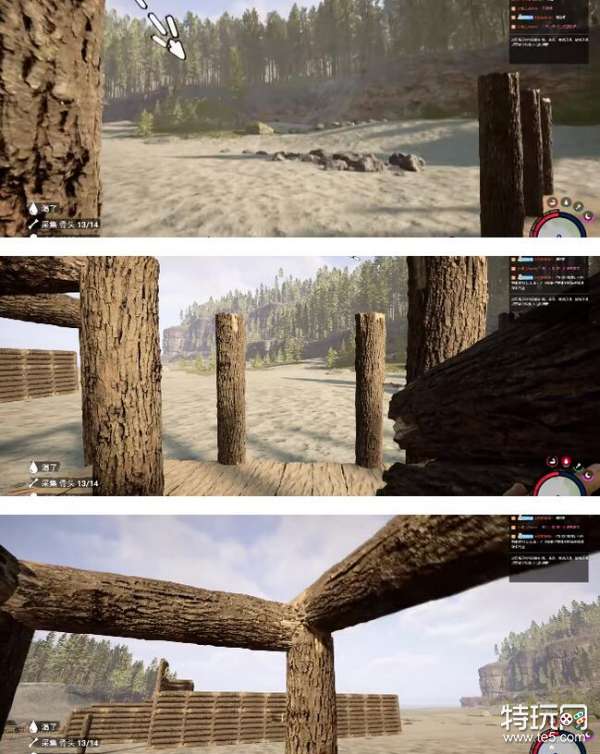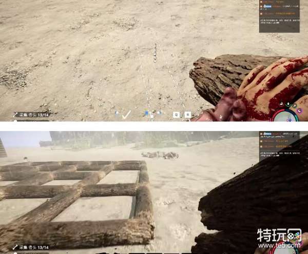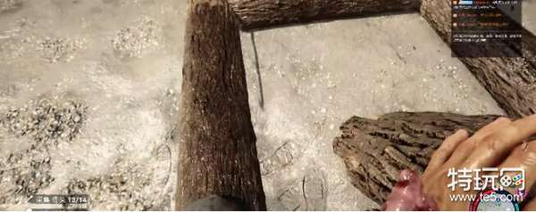 2、接着再用原木对着正方行的框,在提示有白色虚线的地方点击鼠标左键建造地板。