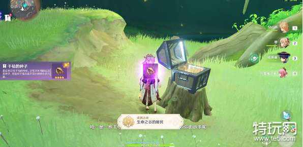 7、接下来只需要用对应元素激活方碑就能解锁宝箱了,开启后即可获得隐藏成就「生命之谷的居民」以及一个任务道具「干枯的种子」。