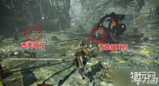 2、平台中间有一滩血迹的橙色拾取点,能捡到一把“青龙偃月刀+2 星4”。