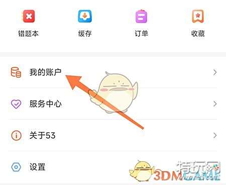 1、首先打开53伴学,进入个人中心页面,点击我的账户;