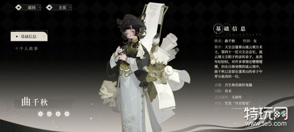 简介:天尘会蓬莱山流云观方术士,第四十一任天尘会会长、流云观主尘阳子的亲传弟子。虽然年纪轻轻,对许多事情还懵懵懂懂,但在日渐衰微的流云观中,曲千秋已是留在蓬莱山的弟子中辈分最高的一位。