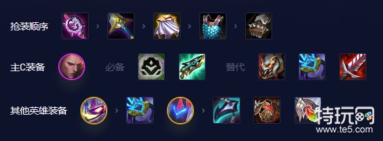 阵容主C佛耶戈,必备机甲转职,这是这套阵容的核心。第二件建议续航装科技枪刃或汲取剑都可,如果又续航符文可不考虑续航装备。第三件装备建议离子或泰坦,泰坦会更稳定一些增伤强度较高,但如果遇到高魔抗阵容,离子更优质,也可把离子给予费德提克,费得提克(需要站位)与佛耶戈技能释放时间差不多,只要躲过有龙牙的敌方高坦就可。