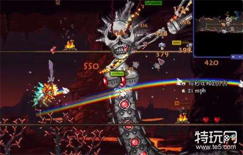 天顶世界介绍:这个地图集合了所有彩蛋种子的大部分特性。并且有这专属boss-美杜莎。这个boss就是普通世界当中的机械三王的结合体。玩家在这个地图当中无法召唤机械三王boss,但可以直接召唤它们的结合体-美杜莎。击败后会掉落机械三王的掉落物,并且有概率掉落专属武器-华夫铁。