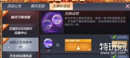 万能碎片用于兑换挑战模式的一些武器碎片,包括一些英雄武器碎片,兑换的位置在活动王牌补给站万能boss碎片兑换中心,兑换奖励包括有无影法杖、楼兰杖刀、狂沙战剑、三叉戟、泰坦拳套、十冷神杖、天使智杖、凝霜。