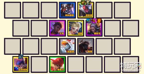 1、阵容构成:加里奥+泰隆+阿利斯塔+希维尔+艾克+佛耶戈+蕾欧娜+迦娜+厄斐琉斯