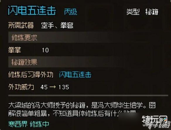 2.往前走拐角那边击败2个npc,回来找冯大师,获得【闪电五连击】