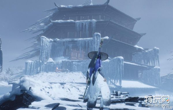 穿过积雪的众多屋顶后,来到建造大型雕像的圆形建筑。