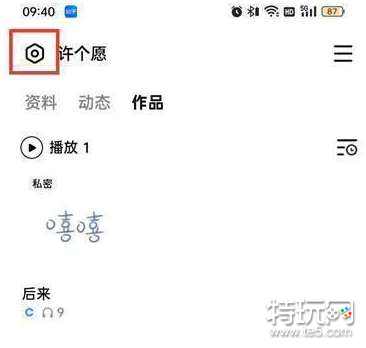 2、然后在个人主页的页面中点击左上角的【设置】;