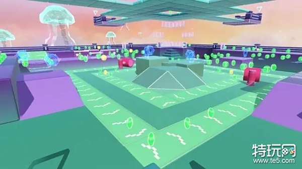 “舞池狂欢”在此邀请蛋仔们加入这场紧张刺激的积分赛。绿色的舞池搭配大胆的紫色装饰,双层赛场供你尽情发挥,站上绿色加速带,争分夺秒让自己拔得头筹!