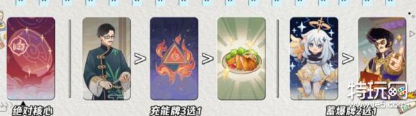 这套牌核心还是依赖班尼特的超强大招buff的加持上运行的,所以前期蓄爆,第二回合开出大招后依靠高额加伤以及回复给对面挂火,再切制莫娜打出蒸发并挂水,最后可莉收割即可,卡组图片思路如下图