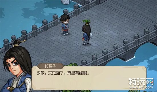 2、来到霖安,左边第一座桥可以遇到长春子,对话之后需要去找他的师兄或者找猴儿酒。