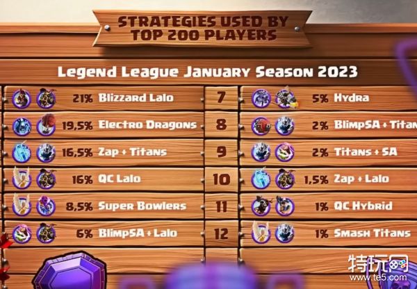 大神们就开发出了“闪震泰坦”和“地震+泰坦+女巫”这两个流派,并且世界排名前10的玩家,至少有2人是使用“闪震泰坦”打上去的。