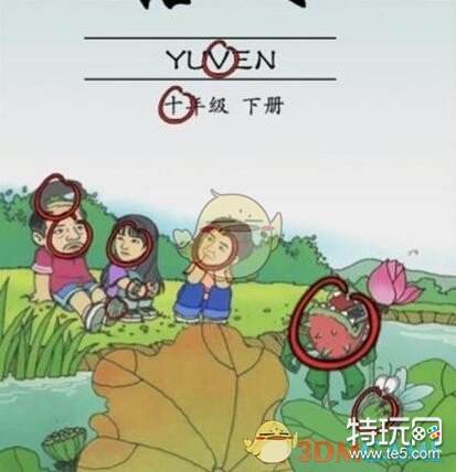 4、在中央荷叶向下滑动,拉开荷叶,则发现额外的人。