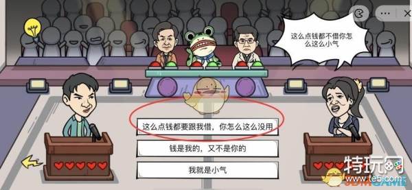 3、在主角显示"我需要一个解释”时,依次点击最左边栽判、中间裁判、最右边裁判、对手。