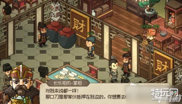 来到右上角的长乐柜坊跟掌柜对话,花1W块钱买下生锈的菜刀。