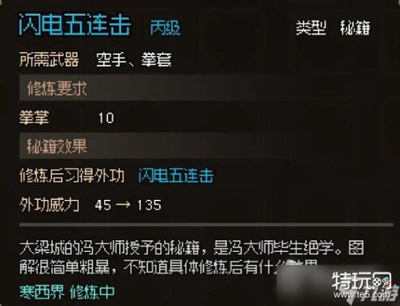 2.往前走拐角那边击败2个npc,回来找冯大师,获得【闪电五连击】