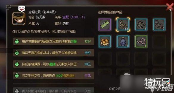 子时来到夜魔坊,中间会遇到拍卖主持人,沈无欺(名声4级,喜好药材)可以直接把好感送到100,无需做任务。