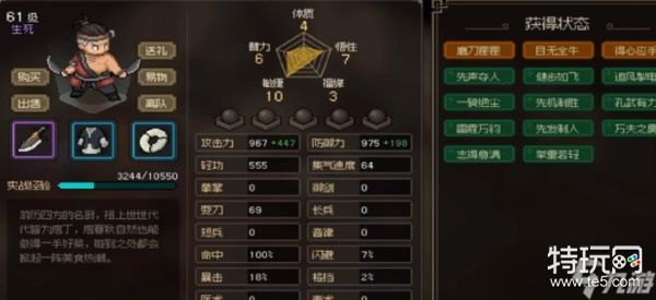 大侠立志传怎么招募队友?想必很多小伙伴都知道游戏近期人气非常高,队友是可以通过招募获得的,玩家可以自己招募很多队友,不过招募队友是有条件要求的,满足了条件才能招募到队友,接下来特玩小编就给大家带来了大侠立志传招募队友条件介绍,希望能帮助到大家,一起来看看吧。