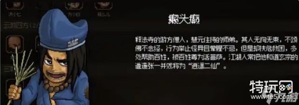 这个角色招募很简单,送到59好感度后触发后续剧情,送100贯钱给寺庙,就能带济公入队,强度一流,坦度也很不错,是后期强力打手之一,就是价格太高,如果你不是丁家女婿或者没有娶公主,资金方面必然有些吃紧。