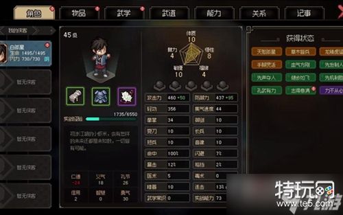 4、这样的话体质、臂力、敏捷还能各加上1点,进入游戏之后在武道方面优先加“风”将集气速度和连击率提升上来。