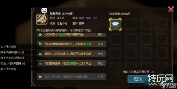 1、首先需要明确猎户刘十八的喜好是大海碗,每次可以增加22点好感度,不断地向其送大海碗,让好感度提升至生死之交;